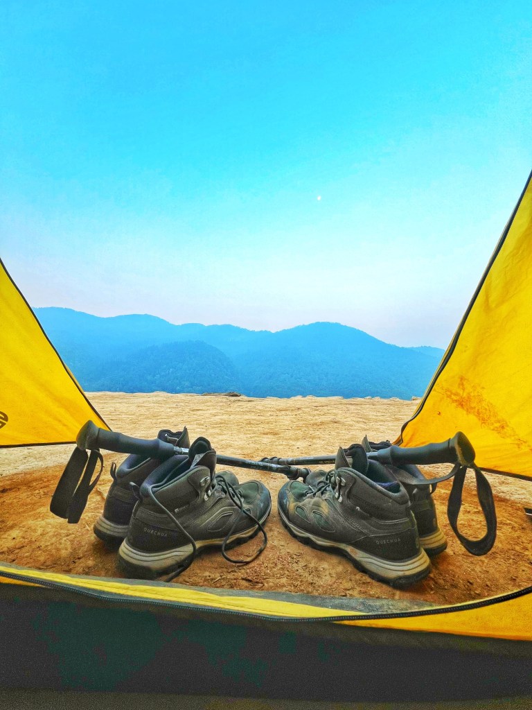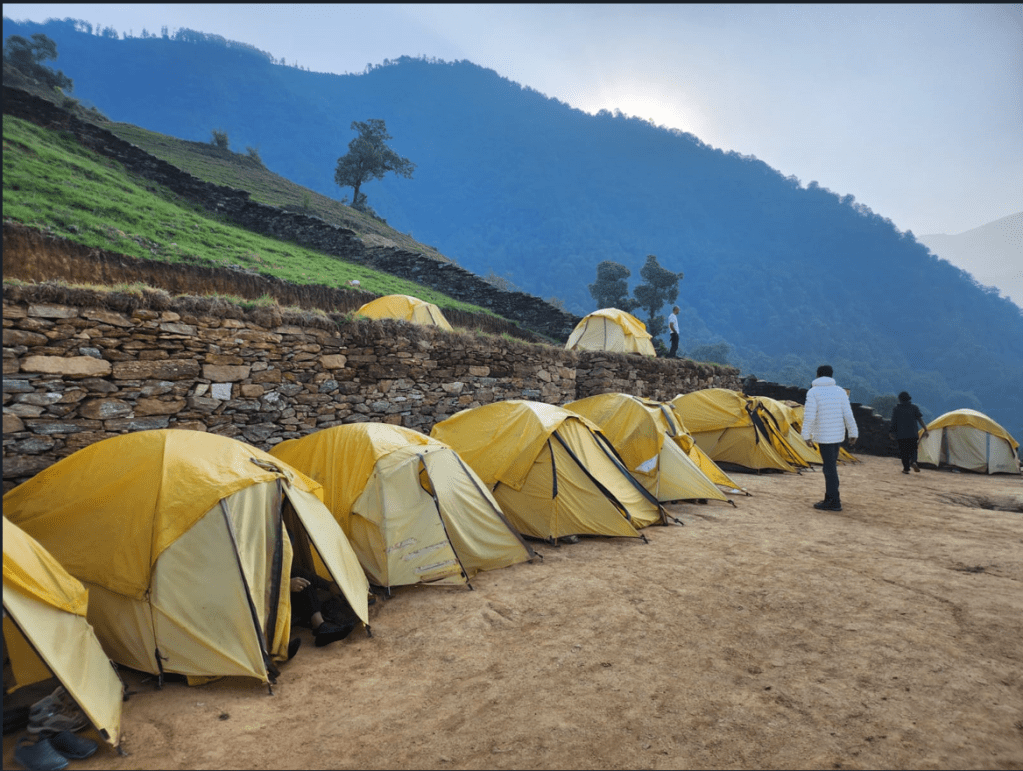 Over more than 9+ km hike, severe climbs and much steeper downfalls were demanding. Going up felt simpler than down, just like in life as descent calls for significantly more stability and grip to keep focused. Thank God for the fellows who were now buddies to offer hand/pole when I fell and to yell out the trails when I couldnt find the correct ones. A clear delight from azure heavens, nature at its most pure seemed like little showers. Smaller tents but lots of room outside with overflowing water, nice conversation, and loads of positive energy from Vijay ji-our young guide from Sari. The always delicious meals made it a memorable one.